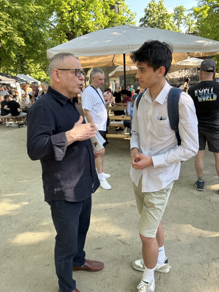 Po určité chvíli se mi, i díky členům Mladých sociálních demokratů, podařilo domluvit s Lubomírem Zaorálkem krátký rozhovor.