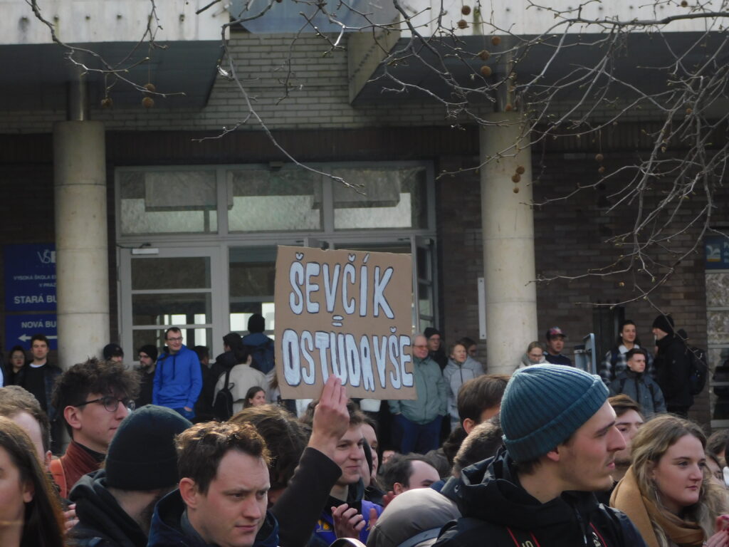 Studenti Vysoké školy ekonomické (VŠE) v Praze demonstrovali proti děkanovi Národohospodářské fakulty Miroslavu Ševčíkovi. Kritika z jejich strany, ale i ze strany vedení univerzity reagovala na jeho dlouhodobé, podle nich neetické chování. K odstoupení z funkce vyzvali Ševčíka jak studenti ve své petici, tak sám rektor VŠE Petr Dvořák. Někteří ale přišli děkana Ševčíka na shromáždění ve středu 15. března i podpořit. Mezi oběma stranami tak probíhaly chvílemi vyhrocené diskuze.