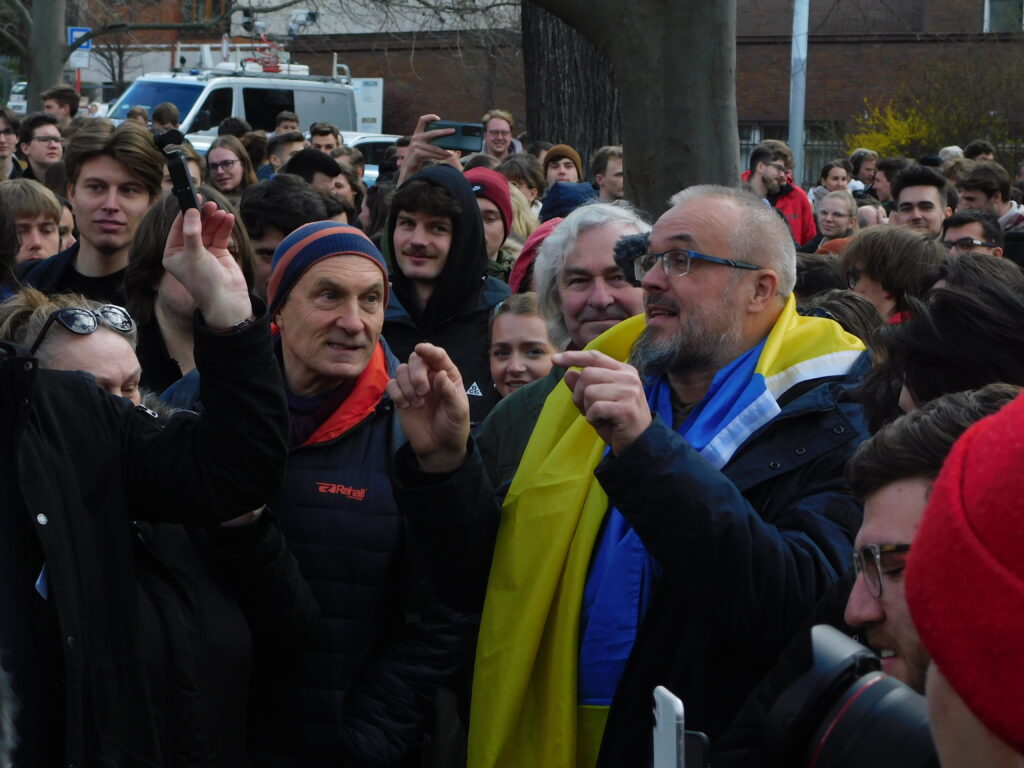 Přestože poté organizátoři půlhodinovou demonstraci ukončují, diskuze a hádky mezi protestujícími pokračují. Množství stativů, kamer a mikrofonů tak spolu s tím dokazuje to, co připomíná ve svém projevu Lukáš Hulínský: „I v dnešní době jsou studenti významným hybatelem společenského dění.“