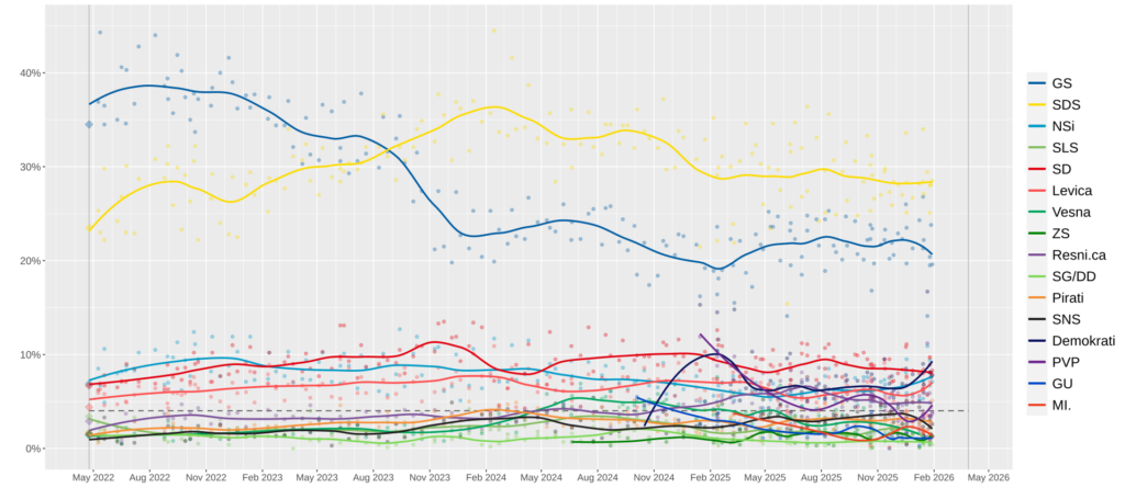 Současný návrat Janši na vrchol preferencí, kde se SDS drží kolem 28 %, je do značné míry dán rozčarováním z vládního Hnutí Svoboda (GS) premiéra Roberta Goloba. To v roce 2022 zvítězilo s příslibem konce „janšismu“ a obnovy právního státu. Vláda Roberta Goloba se však v roce 2025 i počátkem roku 2026 potýká s vážnými korupčními skandály a neschopností prosadit slibované reformy zdravotnictví a školství. Sám premiér čelí vyšetřování protikorupční komise kvůli údajnému ovlivňování policie. Pro mnoho voličů se tak Janšova SDS stala prověřenou jistotou v kontrastu s vnímanou nekompetencí současného kabinetu, což Janša v kampani efektivně využívá k vykreslení vlády jako chaosu ovládaného starými strukturami.