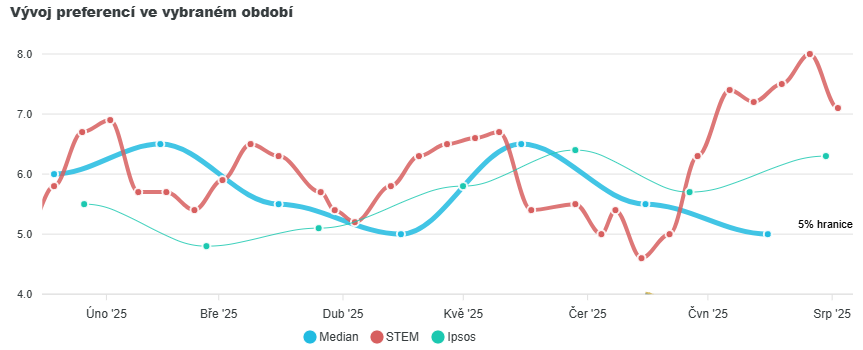 V průzkumu STEM ze 17. srpna obdržely Stačilo a SOCDEM dohromady 7,1 % hlasů.