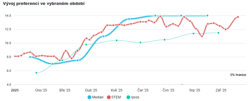 Pozice SPD po volbách je tedy stále velkou neznámou, Babiš vyloučil spolupráci se Stačilo! v potenciální vládě, bez SPD se tedy nejspíš na 101 podpisů potřebných pro sestavení vlády nedostane, pak je zde ale alternativa Motoristů. Na začátku této série byli Motoristé v průzkumech pod 5% hranicí a stran s šancí dostat se do parlamentu bylo jen šest, Motoristé se ale postupně vyšplhali nad 5 % a v posledním průzkumu dokonce předehnali Stačilo!, je tedy možné, že ANO nebude SPD ani potřebovat.